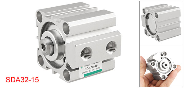 Product Name Air Cylinder Model SDA32-15 Action Type Double Action Bore 32mm / 1.260" Stroke 15mm / 0.590" Port Dia(Approx) 8.6mm / 0.338" Center Threaded Hole Dia(Approx) 5mm / 0.197" Max Press 1.0Mpa Overall Size(Approx) 50 x 44 x 47mm / 2" x 1.7" x 1.85"(L*W*H) Material Metal Weight 160g Package Content 1 x Air Cylinder - Reviews