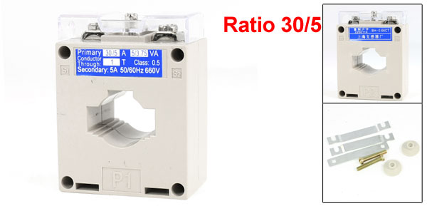 Details0.66KV 50/60Hz 0.5 Accuracy 30/5 Current Transformer BH-0.66CT  Item Name Current Transformer Model Number BH-0.66CT Rated Current Ratio 30/5 Accuracy Class 0.5 Rated Voltage 0.66KV Rated Load 5/3.75VA Rated Frequency 50/60Hz Conductor Through 1T Primary Current 30A Secondary Current 5A Total Size 8 x 6 x 3.7cm / 3.1" x 2.4" x 1.4"(L * W * T) Case Material Plastic Color Gray Weight 232g Package Content 1 x Current Transformer Several Installing Kits
