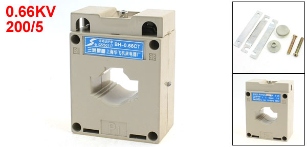 Item Name Current Transformer Model Number BH-0.66CT Rated Current Ratio 200/5 Accuracy Class 0.5 Rated Voltage 0.66KV Working Frenquency 50Hz - 60Hz Conductor Through 1T Primary Current 200A 5VA Secondary Current 5A 50/60Hz 660V Power 5/3.75VA Total Size 61 x 37 x 80mm / 2.4" x 1.5" x 3.1"(L * W * T) Case Material Plastic Color Gray Weight 241g Package Content 1 x Current Transformer