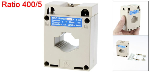 Item Name Current Transformer Model Number BHLMK-0.66 Rated Current Ratio 400/5 Accuracy Class 0.5 Rated Voltage 0.66KV Working Frenquency 50Hz - 60Hz Conductor Through 1T Primary Current 400A Secondary Current 5A 50/60Hz 660V Power 5/3.75VA Total Size 8 x 6 x 3.3cm / 3.1" x 2.4" x 1.2"(L * W * T) Case Material Plastic Color Gray Weight 243g Package Content 1 x Current Transformer
