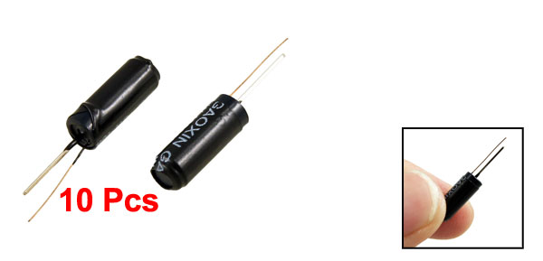 Details0.6mm Pin Dia SW-18020P Ball Rolling Sensor Vibration Switch 10pcs  Product Name Vibration Switch Model Number SW-18020P Max.Voltage 12V Rated Thermal Current 0.1mA Insulation Resistance 10M ohm Overall Package Standard On-Time 0.1ms Temperature Resisting 100°C Body Size 4.5 x 11mm/ 0.17" x 0.43"(D*L) Pin Length 9mm/ 0.35" Pin Diameter (Max) 0.6mm/ 0.023" Main Color Black Weight 3g Package Content 10 x Vibration Switch