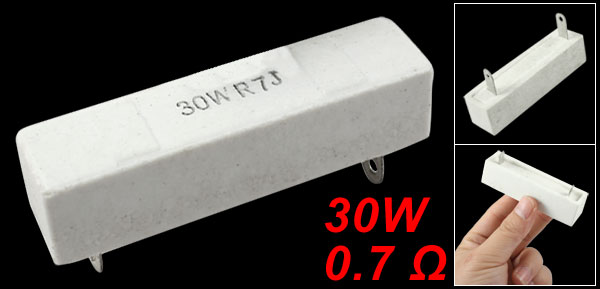 Product Name Cement Resistor Body Material Ceramic, Cement Power 30W Resistance 0.7Ω Tolerance ±5% Body Size (Approx.) 74 x 18 x 17mm / 2.9" x 0.7" x 0.7" (L * W * H) Pin Size (Approx.) 15 x 8mm / 0.6" x 0.3"(L*W) Pin Spacing 56mm/ 2.204" Color White Weight 54g Package Content 1 x Cement Resistor - Reviews