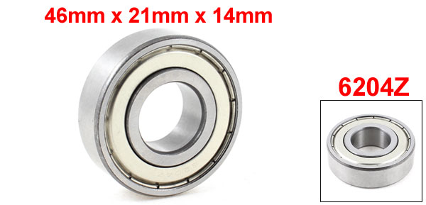 Product Name Deep Groove Ball Bearing Type 6204Z Material Metal Outer Diameter 46mm / 1.8" Inner Diameter 21mm/ 0.8" Thickness 14mm/ 0.55" Main Color Silver Tone Weight 97g Package Content 1 x Deep Groove Ball Bearing - Reviews