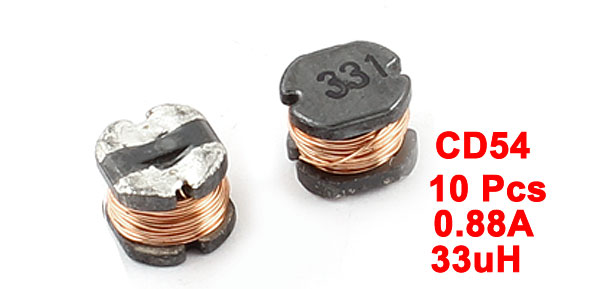 Details0.88A Ferrite Chip SMD Power Inductors CD54 33uH 5.8mmx5.2mmx4.5mm 10PCS  Product Name SMD Inductor Model CD54 Material Ferrite Core, Metal Type SMD Inductance Tolerance ±10% Rated Current 0.88A DC Resistance 0.23 Ohm Inductance 33uH Body Size 5.8 x 5.2 x 4.5mm/ 0.22" x 0.2" x 0.17"(L*W*H) Color Black, Copper Tone Weight 11g Package Content 10 Pcs x SMD Inductor