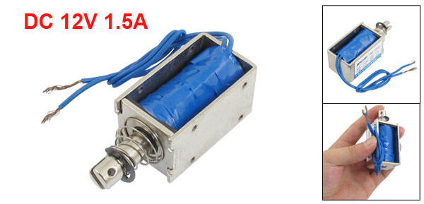 Product Name DC Solenoid Electromagnet Type MR-1253 Rated Voltage DC 12V Rated Current 1.5A Action Form Push Rated Stroke 10mm, 0.8kg Body Size(Approx) 5.2 x 3.1 x 2.7cm / 2"x 1.2" x 1.1" (L*W*H) Cylinder Size(Approx) 5.6 x 1cm / 2.2" x 0.4" (L*D) Cable Length(Approx) 22cm / 8.6" (Each) External Material Metal, Electronic Parts Main Color Silver Tone Weight 194g Package Content 1 x DC Solenoid Electromagnet - Reviews