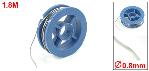 Product Name Solder Wire Reel Reel Size 3.6 x 1.1cm / 1.4" x 0.4"(D*H) Wire Diameter 0.8mm/0.03" Length 1.8M/6Ft Color Light Blue, Silver Tone Weight 11g Package Content 1 x Solder Wire Reel - Reviews