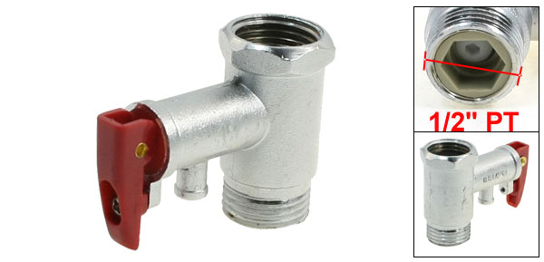 Product Name Safety Valve Pressure 0.8Mpa Male Thread Dia. 21mm Male Thread Size 1/2" PT Female Thread Dia 19mm Female Thread Size 1/2" NPT Barb Diameter 7mm/0.28" Overall Size 6.3 x 4.6 x 2.5cm/2.5" x 1.8" x 1"(L*W*T) Material Metal Color Red, Silver Tone Net Weight 81g Package Content 1 x Water Heater Safety Valve - Reviews
