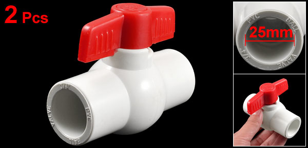 0.984" x 0.984" Slip Ends Two Way Ports PVC Ball Valve White Red 2 PCS