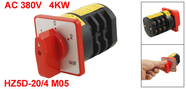 Product Name Combination Switch Model No. HZ5D-20/4 M05 Ui AC 380V, 4KW Ith AC 20A Terminal Number 12 Overall Size 6 x 6 x 10cm / 2.4" x 2.4" x 3.9" (L*W*H) Bottom Screw Dia 3.8mm / 0.15" Bottom Size 5.5 x 4.8cm / 2.1" x 1.9"(L*W)