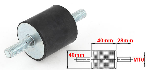 Product Name Rubber Vibration Isolator Mounts Material Metal, Rubber Thread Size (Approx.) M10 x 28mm(Dia.* L) Rubber Size (Approx.) 40 x 40mm / 1 1/2" x 1 1/2" (Dia.*H) Overall Height(Approx) 98mm / 4" Color Black, Silver Tone Weight 138g Package Content 1pcs x Rubber Vibration Isolator Mounts - Reviews