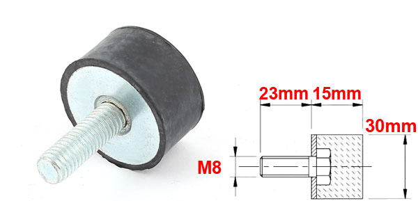 Product Name Rubber Vibration Isolator Mounts Material Metal, Rubber Thread Size (Approx.) M8 x 23mm(Dia.* L) Rubber Size (Approx.) 30 x 15mm / 1 1/8" x 5/8" (Dia.*H) Overall Height(Approx) 40mm / 1.57" Color Black, Silver Tone Weight 32g Package Content 1pcs x Rubber Vibration Isolator Mounts - Reviews