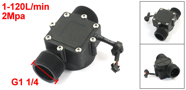 Product Name Water Flow Sensor Model DN32 Type Hall Effect Max Switch Current & Voltage 10mA, DC 3-18V Working Range 1-120L/min Male Thread Size 42mm/G1 1/4 Max. Water Pressure 2Mpa Total Size 120 x 65 x 50mm/ 4.7" x 2.6" x 2"(L*Max.W*H) Cable Length 13cm/ 5.1" Main Material Plastic Color Black Weight 200g Package Content 1 x Water Flow Sensor - Reviews