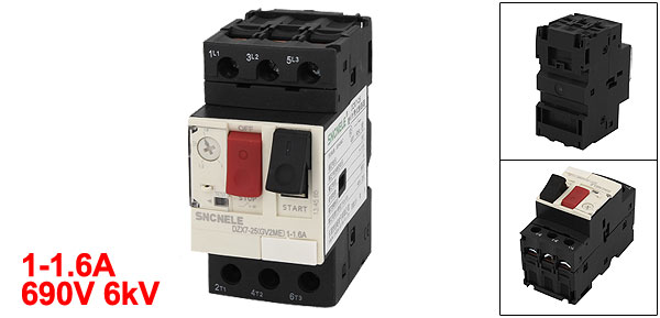 Product Name Motor Circuit Breaker Model No. DZX7-25 Type 1NC 1NO 3 Phase Thermal Protection Adjustable Range 1-1.6A Ue 690V 50Hz Uimp 6kV Lcu/Lcs 4kA 2kA Overall Size (Approx.) 85 x 73 x 43mm / 3.3" x 2.9" x 1.7"(L*W*H ) Material Plastic, Electric Components Weight 278g Package Content 1 x Motor Circuit Breaker - Reviews