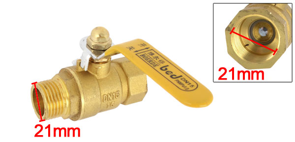 Product Name Lever Handle Ball Valve Female Thread Diameter 21mm/ 1/2 PT Male Thread Diameter 21mm/ 1/2 PT Body Size 60 x 38mm/ 2.4" x 1.5" (L*W) Level Handle Size 70 x 17mm/ 2.8" x 0.7" (L*W) Color Gold Tone, Yellow Material Brass, Plastic Net Weight 156g Package 1 x Lever Handle Ball Valve - Reviews