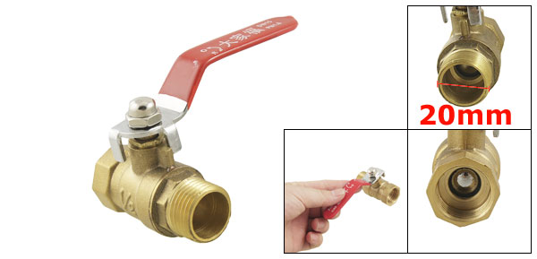 Product Name Ball Valve Dimension of Ball Valve 1/2" Thread Diameter 20mm Handle Length 8.3cm / 3.2" Body Size 52 x 26mm ( L*T) Surface Treatment Brass Tone Material