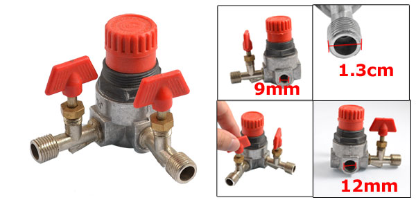 Product Name Pressure Valve Design Double Outlet Material Plastic, Metal Color Red, Black, Silver Tone Male Thread Diameter 1.3cm/ 1/2" Female Thread Diameter Small: 9mm/ 0.35"