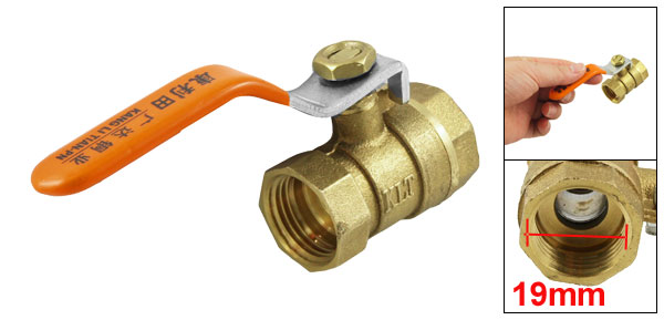 Product Name Ball Valve Female Inside Dia 19mm/ 1/2" NPT Level Handle Size 72 x 15mm/ 2.8" x 0.6"(L*W) Total Size 100 x 26 x 42mm/ 3.9" x 1" x 1.7"(L*W*H) Color Brass Tone, Orange Main Material Metal Weight 102g Package 1 x Ball Valve - Reviews