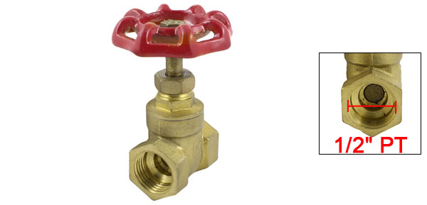 1/2" PT Female Thread F/F Round Red Lever Handle Gate Valve Brass Tone