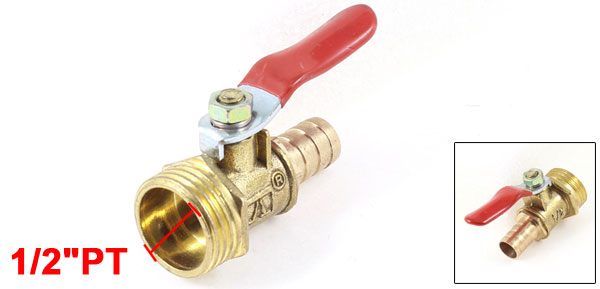 1/2" PT Male Thread to 10mm Hose Tail Lever Handle Ball Valve Gold Tone