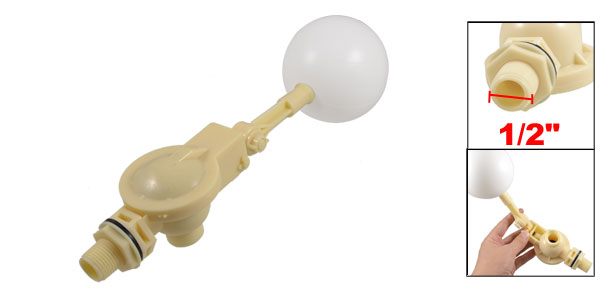 Product Name Float Ball Material Plastic Color White, Beige Ball Diameter 80mm/ 3.1" Thread Size 1/2" PT Male Thread Diameter 20.3mm/ 0.8" Total Length 29.5cm/ 11.6" Net Weight 132g Package Content 1 x Float Ball - Reviews