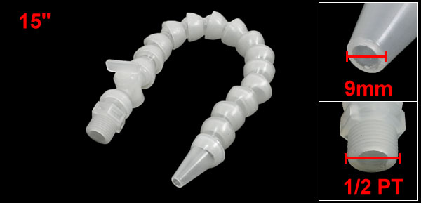 Product Name Coolant Pipe Design Round Nose, Flexible Thread Diameter 1/2 PT (20mm) Nozzle Size 9 x 6mm/ 0.35" x 0.24"(OD*Inner D) Overall Size 38 x 3.8cm / 15" x 1.5"(L*Max.W) Material Plastic Color Clear Weight 68g Package Content 1 x Coolant Pipe - Reviews