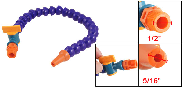 Product Name Flexible Coolant Pipe Material Plastic Thread External Diamter 1.27cm / 1/2" Nozzle Diameter 0.8cm / 5/16" Total Length (Approx.) 34.2cm / 13.5" Main Color Indigo Blue , Orange Weight 51g Package Content 1 x Flexible Coolant Pipe - Reviews