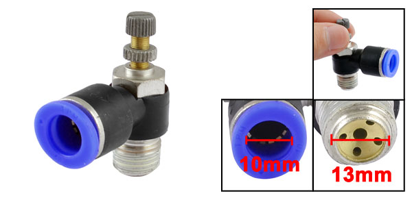 Product Name Pneumatic Speed Controller Inner Diameter (Blue End) 10mm / 3/8" Thread Outer Diameter 13mm / 1/2" Total Size 44 x 40 x 13mm / 1.7" x 1.57" x 0.51" (L*W*T) Material Plastic, Metal Color Blue, Black, Silver Tone Weight 14g Package Content 1 x Speed Controller - Reviews