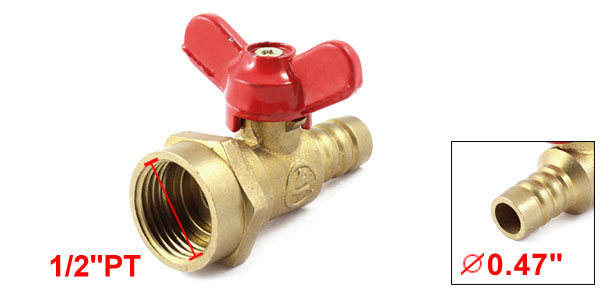 1/2"PT Female Thread to 12mm Barb Fitting Tee Handle Ball Valve Gold Tone