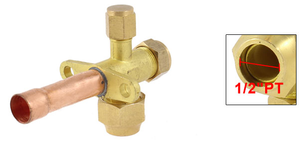 1/2"PT Inlet 3 Way Gold Tone Straight Flare Tube Split Air Conditioner Valve