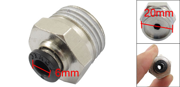 Item Name Quick Fitting Model JPC6-04 Material Metal, Plastic Color Silver Tone, Black Thread Size 1/2" PT Thread Diameter 20mm Inner Diameter(Black End) 6mm Total Size(Each) 22 x 24mm/ 0.8" x 0.9" (L*W) Weight 36g Package Content 1 x Quick Fitting - Reviews