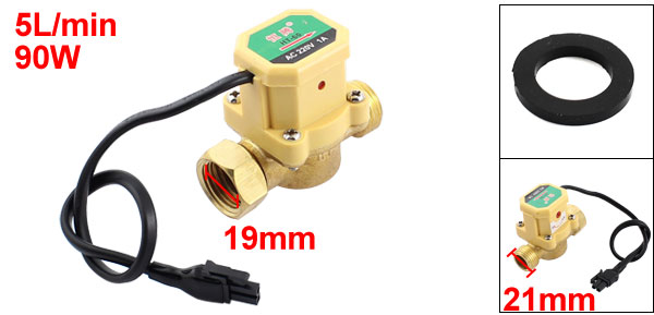 Country of Manufacture CHINA Male Thread Dia 21mm/ 1/2BSP Power 90W Female Thread Dia 19mm/ 1/2BSP Material Metal Wire Length 23cm/9" Working Voltage AC 220V 1A Product Name Water Flow Switch Net Weight 141g Package Content 1 x Water Flow Switch Max. Water Pressure 0.6Mpa Flow Characteristic 5L/min Body Size 68 x 40 x 56mm/2.7" x 1.6" x 2.2"(L*W*H) - Reviews