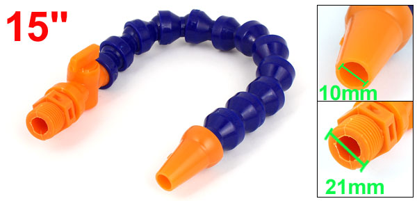 Product Name Flexible Coolant Pipe Material Plastic Thread External Dia. 21mm / 1/2BSP Nozzle Diameter 13 x 10mm / 0.5" x 0.4"(Outer.D*Inner.D) Total Length (Approx.) 38cm / 15" Main Color Blue, Orange Weight 70g Package Content 1 x Flexible Coolant Pipe - Reviews