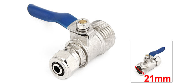 Product Name Ball Valve Male Thread Diameter 21mm/1/2PT Branch Hole Diameter 4.5mm Level Handle Size 5 x 12mm/ 2" x 0.5" (L*W) Overall Size 4.7 x 3cm/1.9" x 1.2"(L*W) Color Silver Tone, Blue Material Metal Weight 65g Package 1 x Ball Valve - Reviews