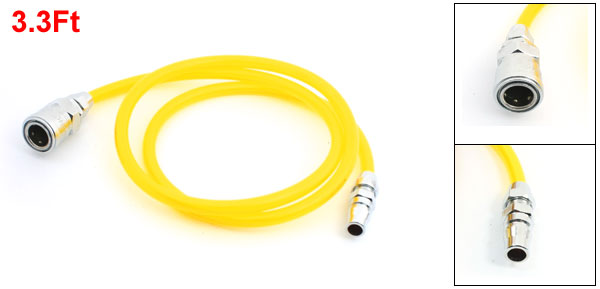Product Name Air Compressor Tube Hose Pressure 1.0MPa Quick Connector Dia 12.5mm/1/2" Tube Diameter 8 x 5mm/0.315" x 0.2"(OD* Inner Dia) Total Length 1M/3.3Ft Material PU, Metal Color Silver Tone, Clear Yellow