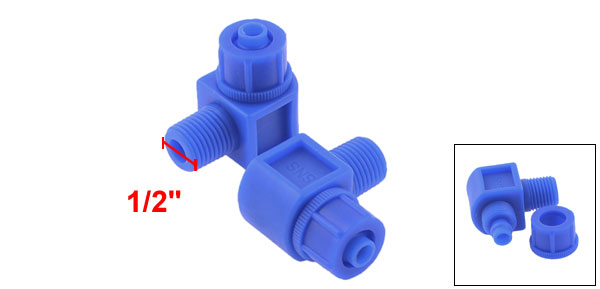 Details1/2" Male Threaded Blue Plastic Pneumatic Straight Adapters Fitting x 2  Product Name Pneumatic Connector Fitting Model BMC10-02 Thread Diameter 12.5mm/ 1/2" Fit Hose Diameter 8 x 6mm/ 0.31" x 0.24" (OutterD*InnerD) Length 3.2cm/ 1.25" Hex Side to Side Size 14.6mm/ 0.6" Material Plastic Color Blue Weight 10g Package Content 2 x Pneumatic Connector Fitting