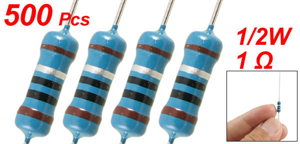 Product Name Metal Film Resistor Rated Power 1/2W Tolerance ±1% Resistance Value 1 Ω T.C.R (Temperature Coefficient) ±50ppm/°C Body Size 3 x 9mm / 0.12" x 0.35" (D*L) Lead Dia. (Approx.) 0.3mm / 0.012" Total Length (Approx.) 60mm / 2.36" Color As Picture Shown Net Weight 133g Package Content 500 Pcs (±2%) x Metal Film Resistors - Reviews
