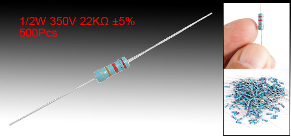 Product Name Carbon Film Resistors Withstand Voltage 350V Power Rating 1/2 W Resistance Tolerance ± 5% Resistance 22 KOhm Diameter 2.5mm/0.1'' Total Length(Approx.) 55mm/2.2'' Color As Picture Show Weight 125g Package Content 500 Pcs(± 2%) x Carbon Film Resistors - Reviews