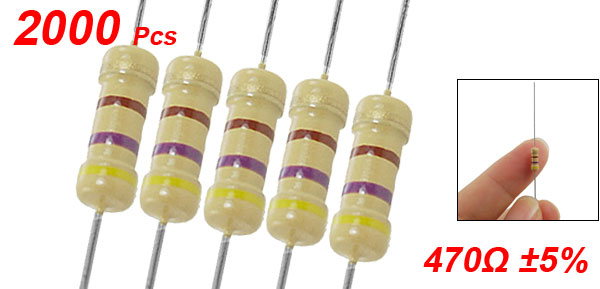 Details1/2W 470 Ohm 5% Axial Carbon Film Resistors 2000 Pcs  Product Name Carbon Film Resistor Material Type Carbon Film Rated Power 1/2W Resistance Value 470Ω Tolerance ±5% Body Size (Each One) 8.5 x 3mm / 0.33" x 0.118" (L*D) Lead Size (Each End) 25 x 0.3mm / 0.98" x 0.012" (L*D) Total Length (Approx.) 58mm / 2.28" Color As Picture Shown Net Weight 485g Package Content 2000 Pcs (± 2%) x Carbon Film Resistors