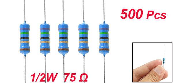 1/2W 75 Ohm 1% Axial Lead Metal Film Resistors 500 Pcs