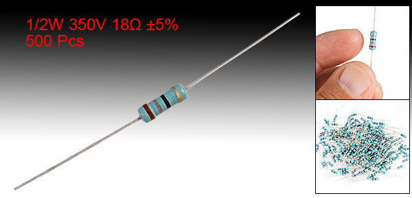 Product Name Carbon Film Resistors Voltage 350V Power Rating 1/2 W Resistance Tolerance ± 5% Resistance 18 Ohm Diameter 2.5mm/0.1'' Total Length(Approx.) 55mm/2.2'' Color As Picture Show Weight 125g Package Content 500 Pcs(± 2%) x Carbon Film Resistors - Reviews