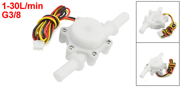Product Name Water Flow Sensor Model SEN-HZ83C Flow Range 1-30L/min Working Voltage & Current DC3V-18V, 10mA Rated Voltage DC5V Pulse Duty Factor 50 % High Level of Pulse Output >4.5V Low Level of Pulse Output <0.5V Max Pressure 1.75Mpa Insulation Performance(Min.) 100MΩ Connector Type 3Pin JST Connector Main Material POM Total Size 93 x 43 x 25mm / 3.7" x 1.7" x 1"(L*W*T) Outlet=Inlet Outer Diameter G3/8 Cable Length 39cm / 15.4" Body Color White Weight 37g Package Content 1 x Water Flow Sensor - Reviews