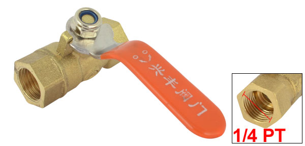 1/4 PT Female F/F Threaded Orange Lever Handle Brass Ball Valve