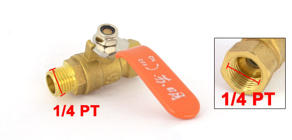 1/4 PT Male Female M/F Threaded Orange Lever Handle Brass Ball Valve