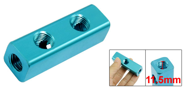 Product Name Air Inline Manifold Block Type 2 Out 3 In Ports Color Turquoise Material Aluminum Inlet Inside Thread Hole Dia 11.5mm Joint Pipe Bore Size G 1/4" Outlet Inside Thread Hole Dia 11.5mm Overall Size 67 x 21 x 21mm / 2.6" x 0.8" x 0.8" (L*W*H) Weight 50g Package 1 x Air Inline Manifold Block - Reviews