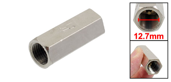 Product Name One Way Check Valve Color Silver Tone Thread Size 1/4" PT Thread Diameter 12.7mm Size 40 x 18mm/ 1.57" x 0.71" (L*D) Material Metal Weight 38g Package 1 x One Way Check Valve - Reviews