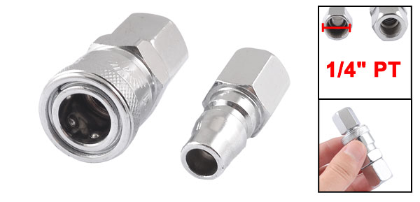 Product Name Air Quick Coupler Female Thread Size 1/4" PT Overall Size 67 x 24mm / 2.6" x 0.9" (L * Max.D) Color Silver Tone Material Metal Weight 100g Package 1 x Air Quick Coupler - Reviews
