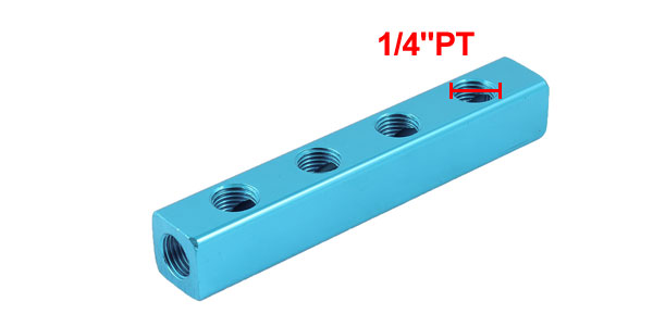 Product Name Manifold Block Splitter Threaded Ports Quantity 7 Ports Way 4 Color Blue Material Aluminum Threaded Port Size 1/4"PT Overall Size 12.4 x 2 x 2cm / 4.9" x 0.8" x 0.8" (L*W*H) Weight 86g Package 1 x Manifold Block Splitter - Reviews