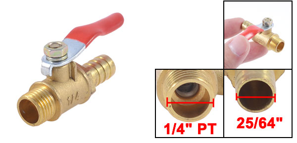 Hose Tail Outer Dia 10mm/ 25/64" Level Handle Size 30 x 11mm/1.1" x 0.4"(L*W) Total Size 45 x 27mm/1.7" x 1"(L*W) Color Gold Tone, Red Material Brass, Metal Net Weight 35g Package 1 x Lever Handle Ball Valve - Reviews