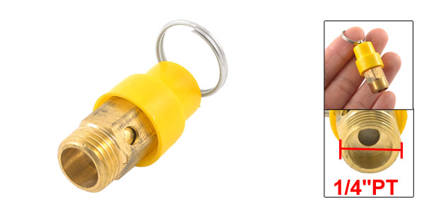 Product Name Pressure Relief Valve Material Plastic, Metal Color Yellow, Gold Tone Thread Size 1/4"PT Ring Diameter(Approx.) 18mm / 0.7" Valve Total Size 33 x 17mm/ 1.2" x 0.6"(L*Max.D) Net Weight 20g Package Content 1 x Pressure Relief Valve - Reviews