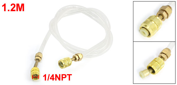 Valve Core Dia 9mm/ 9/25" Hose Dia 8mm/ 5/16" Total Size 120 x 1.6cm/47" x 0.63"(L*Max.Dia.) Total Length 1.2m/4ft Material Plastic, Metal Color Clear, Gold Tone Weight 99g Package 1 x Refrigeration Charging Hose - Reviews